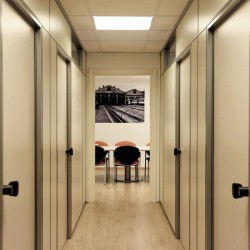 Al soppalco al piano superiore di mq 90 circa, (n. 4 uffici, grande sala riunioni e ulteriore servizio igienico), si accede tramite una scala autoportante posizionata nell’open space.