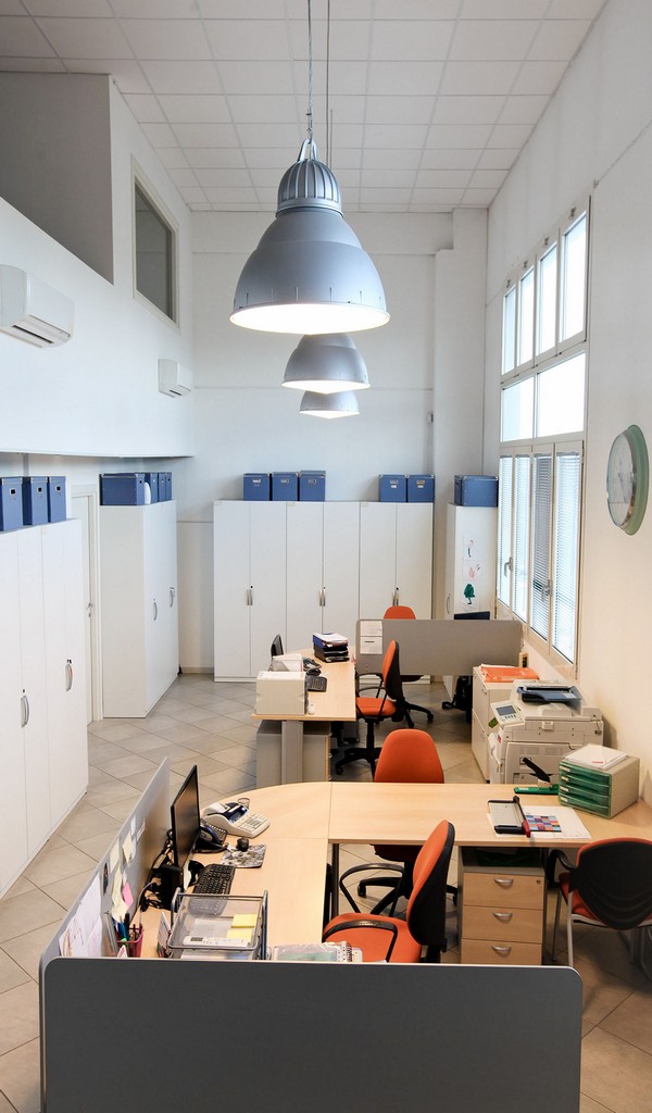 SOLUZIONI: Progetto edile, realizzazione di un nuovo solaio in profilati metallici e lamiera ondulata per realizzazione di un grande soppalco, realizzazione di nuovi servizi igienici (divisi uomo/donna), realizzazione di nuovi impianti a norma, costruzione di pareti divisorie in cartongesso.