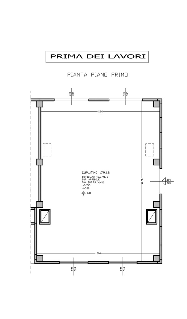 SITUAZIONE: Categoria / Artigianale-Uffici – AZIENDA G; Luogo: Firenze. Trattasi di un fondo (superficie uitile mq 180, volume unico di h 535 cm.) facente parte di un grande complesso artigianale.